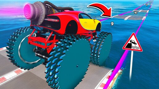 СМОЖЕТ ЛИ ГИГАНТСКИЙ БУГАТТИ ЧИРОН НА КОЛЁСАХ ПИЛАХ ПРОЕХАТЬ ГЛУБОКУЮ ЯМУ С ВОДОЙ 🌊 ГТА 5 МОДЫ МУРКА