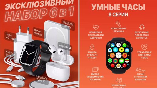 Обзор на смарт-часы в наборе 6 в 1 для IPhone и Android