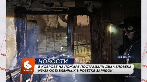 В Коврове случился пожар из-за оставленных в розетке зарядок. Пострадали два человека
