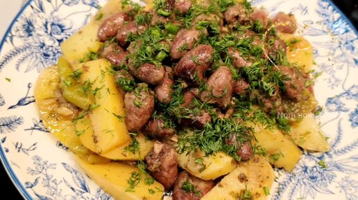 КУРИНЫЕ СЕРДЕЧКИ, ОЧЕНЬ ВКУСНЫЕ!😋С КАРТОШКОЙ НЯМ НЯМ 😋@@