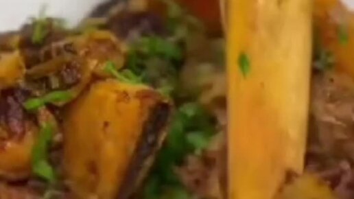 Томленые сочные Рёбрышки запечённые с картофелем луком и чесноком. Пісірілген шырынды қабырғалар.