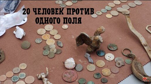 Приехали на немецкие хутора. 20 человек ищет клад на одном поле. Классные находки, куча монет.