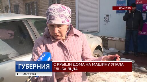 С крыши дома на машину упала глыба льда
