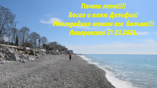 Босая по пляжу Дельфин!. Много иногородних авто! ул.Добролюбова 21.03.2024.🌴ЛАЗАРЕВСКОЕ СЕГОДНЯ🌴СОЧИ