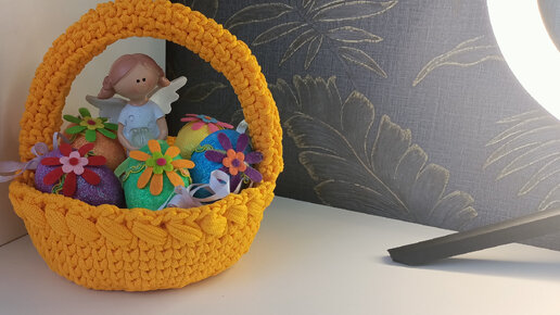 Вязаная корзинка для пасхальных яиц.