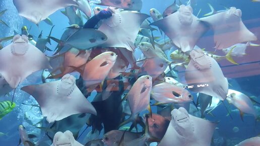 Гигантский аквариум и подводный зоопарк в знаменитом торговом центре Дубай Молл