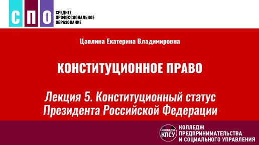 Лекция 5. КП. Конституционный статус Президента Российской Федерации