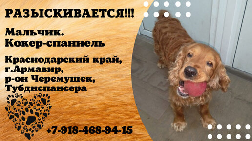 Пропала собака! Мальчик. Кокер-спаниель. Краснодарский край, г.Армавир.