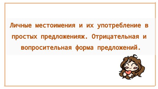 Видеоурок 2: Личные местоимения и их употребление в простых предложериях. Отрицательная и вопросительная форма предложений.