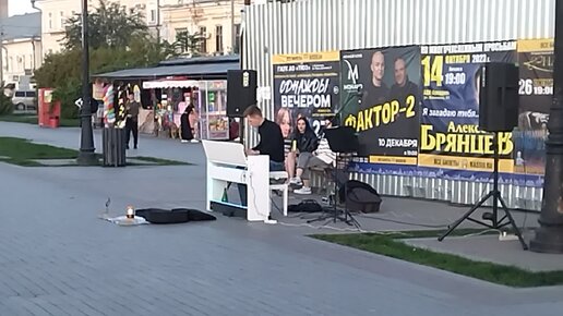 Уличный музыкант играет на набережной города Астрахани