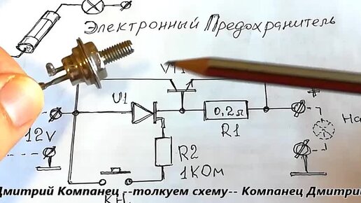 Электронный предохранитель постоянного тока СХЕМА на тиристоре и транзисторе /Компанец Д А/