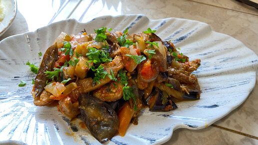 Вкуснейший обед! Свинина с баклажанами и воздушное картофельное пюре.