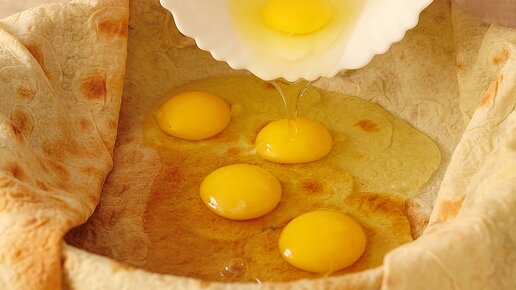 Просто выливаю яички на лаваш. Вкусный завтрак на скорую руку.