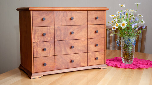 Сделал небольшой настольный комод с выдвижными ящиками из массива вишни! Деревообработка. Подробный процесс.