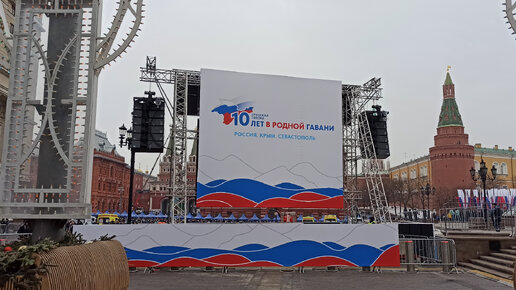 Россия, родная страна! Перед концертом на Красной площади, посвященным десятилетию воссоединения Крыма с Россией. 18 марта 2024.