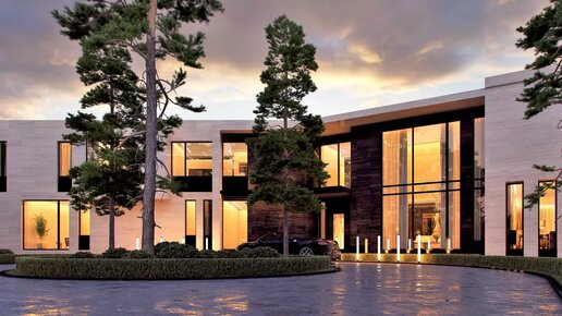 Современный дом с бежевым фасадом 👍Большой коттедж 950 м² 🏡 Проект под ключ – фасады и территория загородного дома