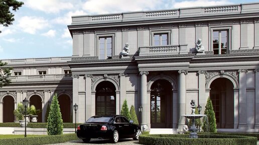 Проект двухэтажного особняка в неоклассике 🖤 Площадь дома 950 м² ⭐⭐⭐⭐⭐ Большой классический дом с плоской крышей
