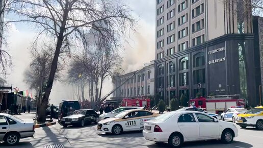 В центре Душанбе загорелось двухэтажное здание
