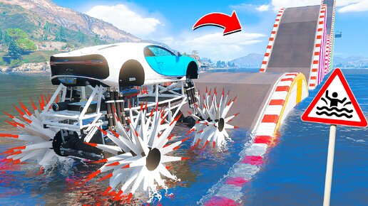СМОЖЕТ ЛИ ГИГАНТСКАЯ БУГАТТИ НА КОЛЮЧКАХ ПРОЕХАТЬ ВОДНЫЕ КОЧКИ в ГТА 5 МОДЫ - ЭКСПЕРИМЕНТЫ в GTA 5 MODS