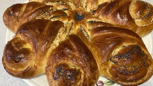 ДОМАШНИЙ ПИРОГ К ЧАЮ С ОРЕХАМИ И МАКОМ.ДРОЖЖЕВОЕ ТЕСТО С УКСУСОМ И СМЕТАНОЙ.