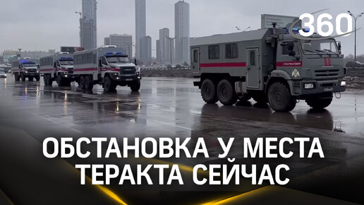 Обстановка у «Крокуса» в эти минуты. Машины Росгвардии уехали.