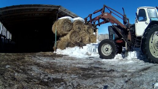 ЮМЗ-6, разбираю стену сеновала из соломы. Рулоны падают куда попало, 21 марта