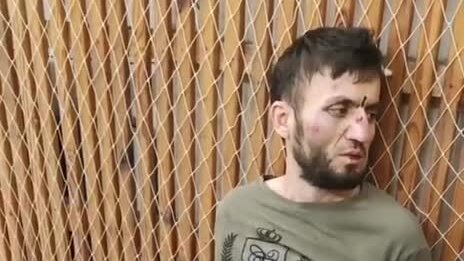 Допрос ещё одного задержанного террориста, который пытался скрыться на дереве. По-русски он не говорит. Только на таджикском.