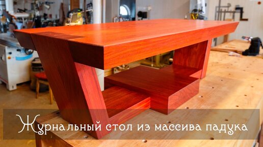 Необычный журнальный стол из массива падука. Подробный процесс изготовления.