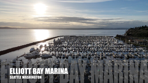Elliott Bay Marina and Palisade Restaurant View at Sunset from the Sky