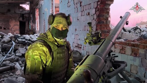 Расчет СПГ-9 «Копьё» несколькими выстрелами поразил группу пехоты противника