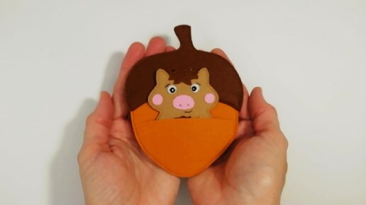 Кабанчик в домике-жёлуде (игрушка из фетра)