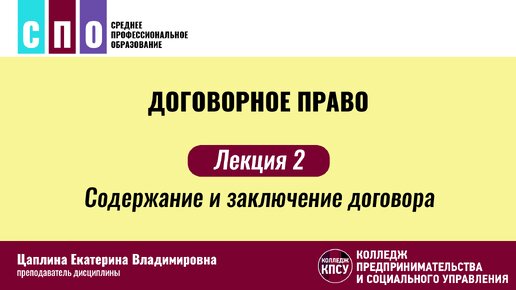 Лекция 2. Содержание и заключение договора
