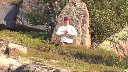 © "Менгир и Ольга Хромова". Экспедиция Гиперборея 2006. Остров Верхний и Оля Хромова у менгира