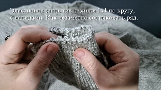 Эластичное закрытие петель по кругу резинки 1х1 с накидом. Как незаметно состыковать ряд и спрятать нить.