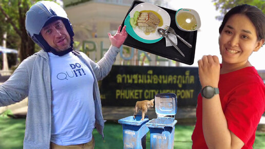 Фуд корт по таиски | Обезьяна роется в мусорном баке | Парк на высоком холме |