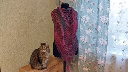 Косынка спицами,со средней линией из бобинной носочной пряжи в 100гр 400м.Уфа 25.03.24год.