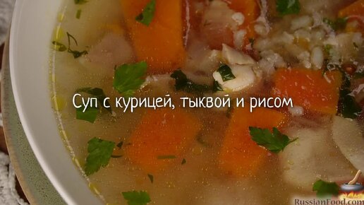 Тепло и сытно. Суп с курицей, тыквой и рисом