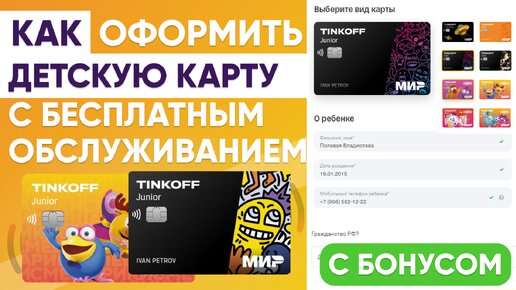 ДЕТСКАЯ КАРТА ТИНЬКОФФ - КАК ОФОРМИТЬ С БЕСПЛАТНЫМ ТАРИФОМ и БОНУСОМ для РЕБЕНКА