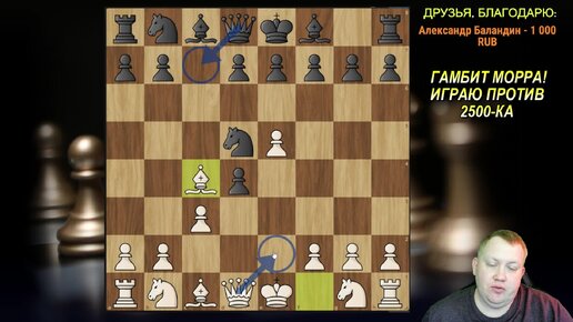 Гамбит Морра: партия на перевес в развитии, погоня за чёрным ферзём. Разгром в 20 ходов. Шахматы