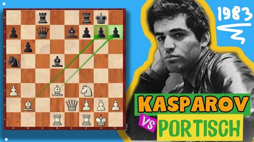 Гарри Каспаров начинает звездить уже во времена царствования Карпова: смотрите как он белыми выносит лайоша Портиша в Никсиче, 1983, 1-0
