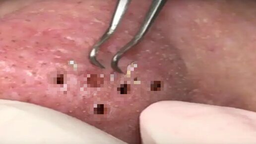 Застарелые Чёрные Точки (комедоны). Косметолог удаляет УГРИ на лице. Аккуратная чистка лица от акне