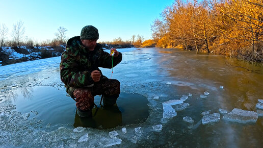 Экстрим рыбалка на речке в конце марта! Это последний лёд! заключительная рыбалка в сезоне.