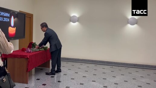 Послы и дипломаты зарубежных государств оставляют записи в книге соболезнований, открытой в здании МИД РФ