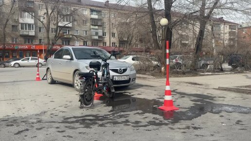 Электро-велосипед и "Мазда" столкнулись сегодня в Тюмени