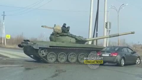 В Нижнем Тагиле танк протаранил легковушку