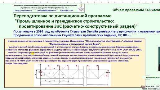 Переподготовка ПГС: проектирование ЗиС (расчетно-конструктивный раздел)