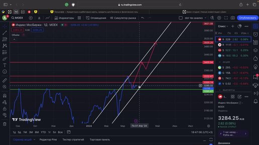 Технический анализ. Индекс МОСБИРЖИ 26.03.24. Начало РОСТА перед ДИВИДЕНДАМИ! Ситуация на рынке располагает К РОСТУ!!!