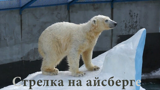 Медвежонок Стрелка забралась на айсберг, который весь покрылся льдом.