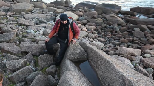 © На Олешине руководитель экспедиции Сергей Голубев осматривает жертвенный камень 1. Съемки экспедиции 2012 г. MVI_0148