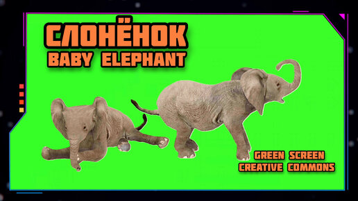СЛОНЁНОК видео Green Screen футаж. ХРОМАКЕЙ АНИМАЦИЯ на зелёном фоне.